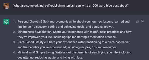 Now, let’s be fair: those responses from ChatGPT are not great. And definitely aren’t going to be topics I will write about anytime soon. But I’m not staring at a flashing cursor on a blank screen.